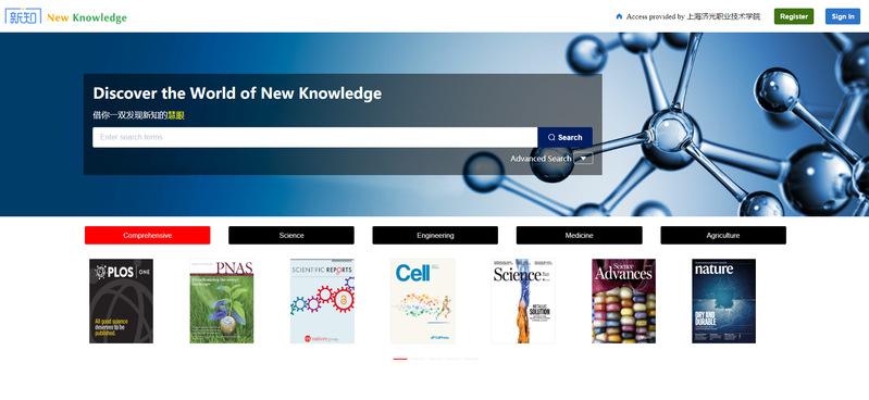 为了更好的服务教学和科研,满足全校(院)师生对外文信息资源的需求,现图书馆开通“新知学术发现系统”产品的试用,该系统集成了学术期刊、会议论文、学位论文、专利、图书等海量外文文献学术资源。超过30万种全球重点期刊,超过80万个学术数据库和站点,实现多类型,多出版商跨库检索。为科研工作者提供专业全面的资源检索,是科研工作必不可少的辅助工具!